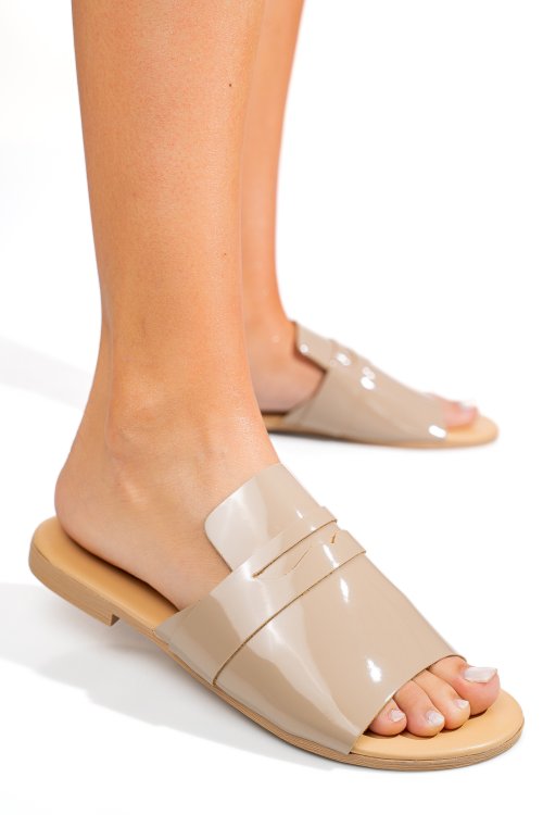 Bézs természetes lakkozott bőr szandál ss7hfiziosa