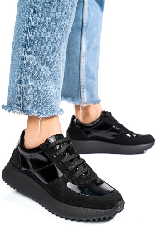 Fekete természetes bőr sport cipők 3s7h000