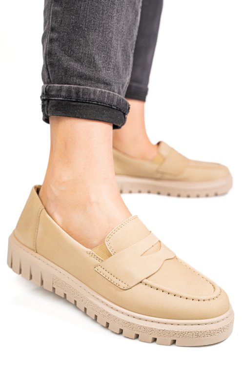 Bézs természetes bőr női lapos cipők 1s7h350