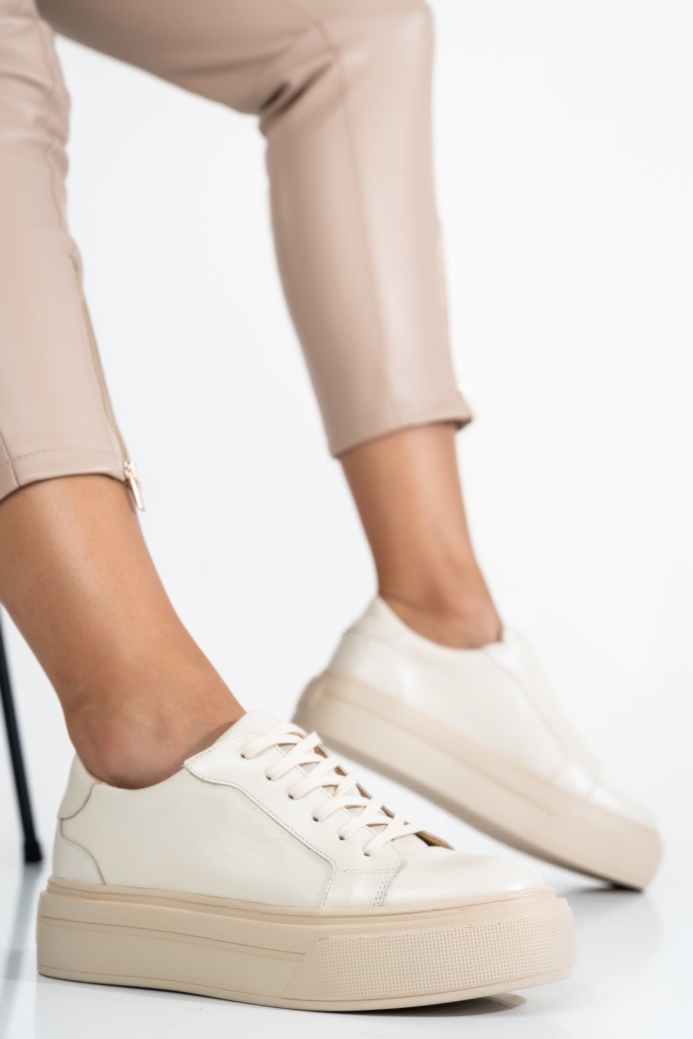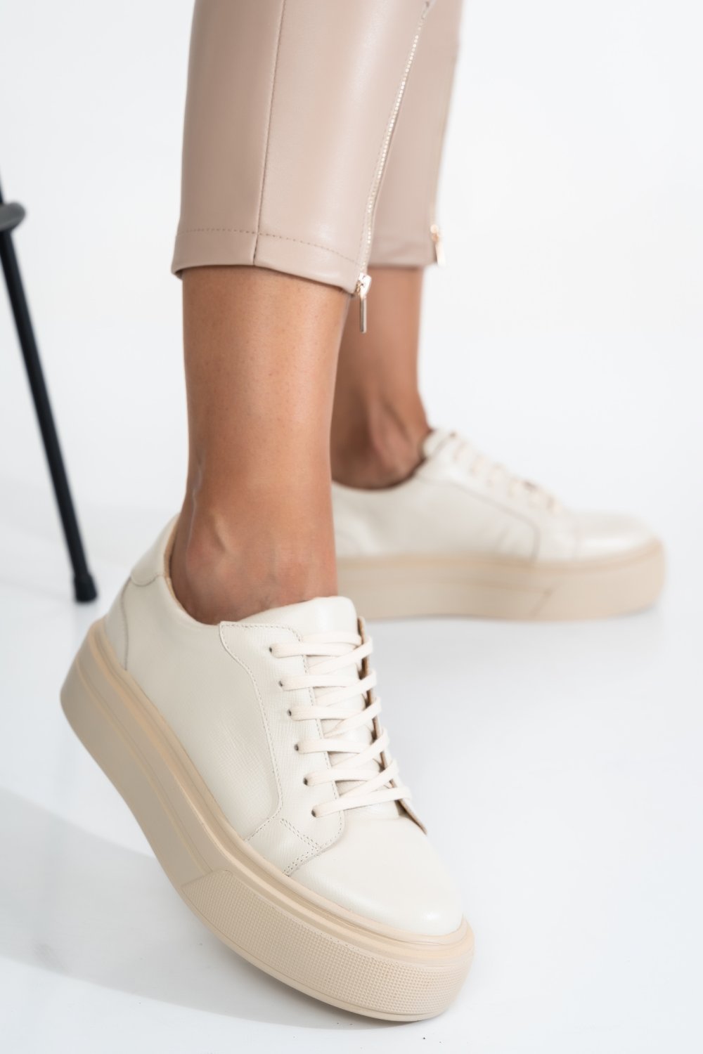 A bézs színű, valódi bőrből készült sportcipők különleges megjelenésűek, kényelmesek és kellemesek!
