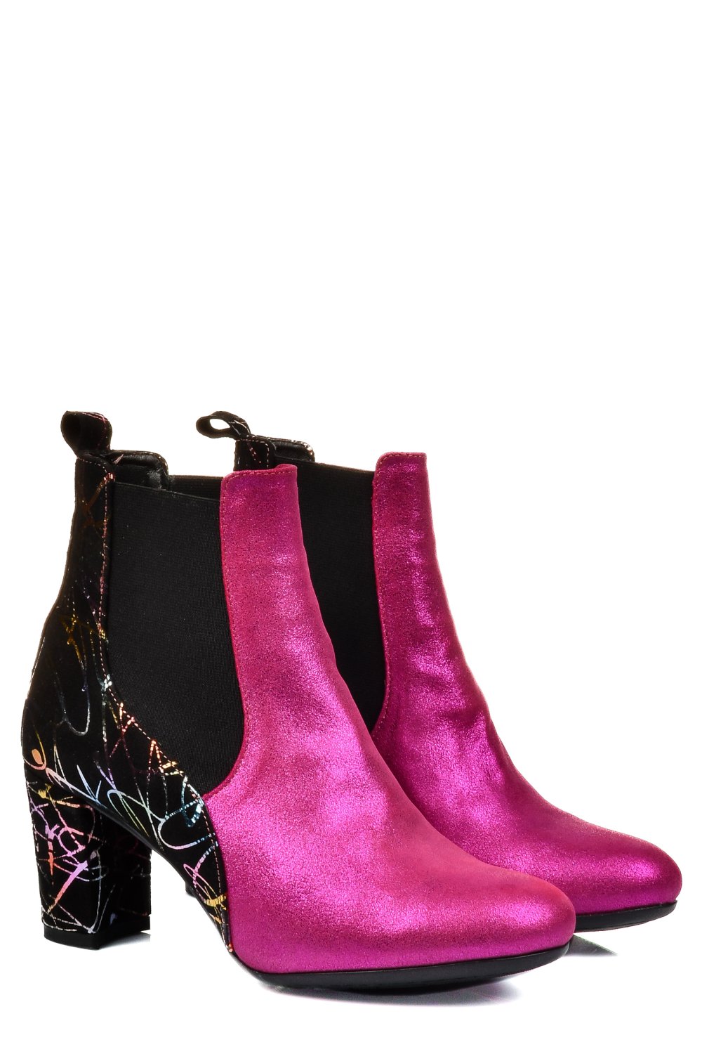 A csizmák gyönyörűek, és különleges alkalmakra lehet őket viselni, mivel fényszintetizáló fuchsiaszínű bőrből készültek, és a sarok körüli változatos színek igazán különlegessé teszik őket.